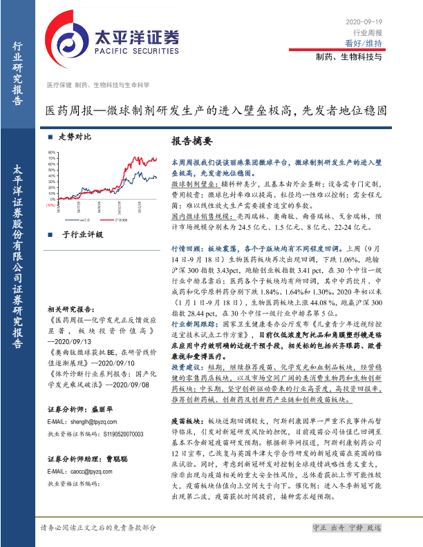 【太平洋证券】【20200919】医药周报—微球制剂研发生产的进入壁垒极高,先发者地位稳固-19页