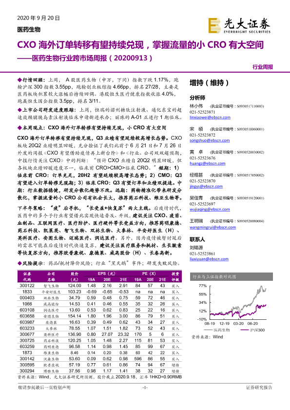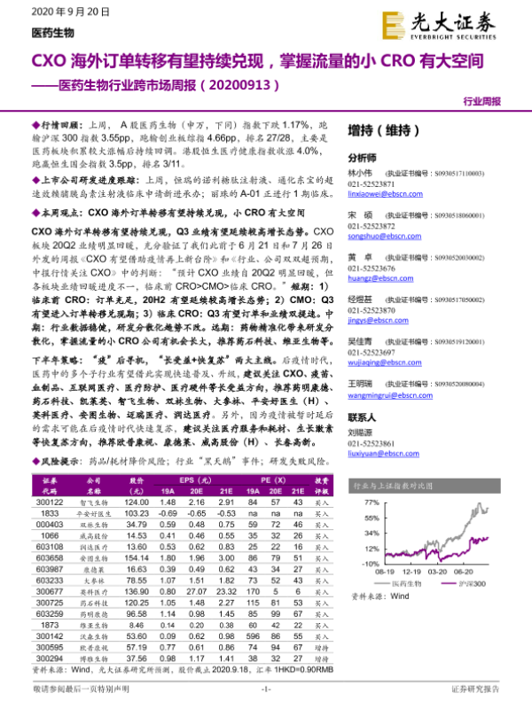 【光大证券】【20200920】医药生物行业跨市场周报:CXO海外订单转移有望持续兑现,掌握流量的小CRO有大空间-30页