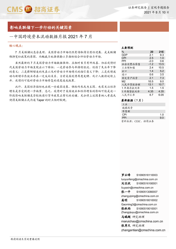 【海通证券】【20210810】中国跨境资本流动数据月报2021年7月:影响美联储下一步行动的关键因素-16页
