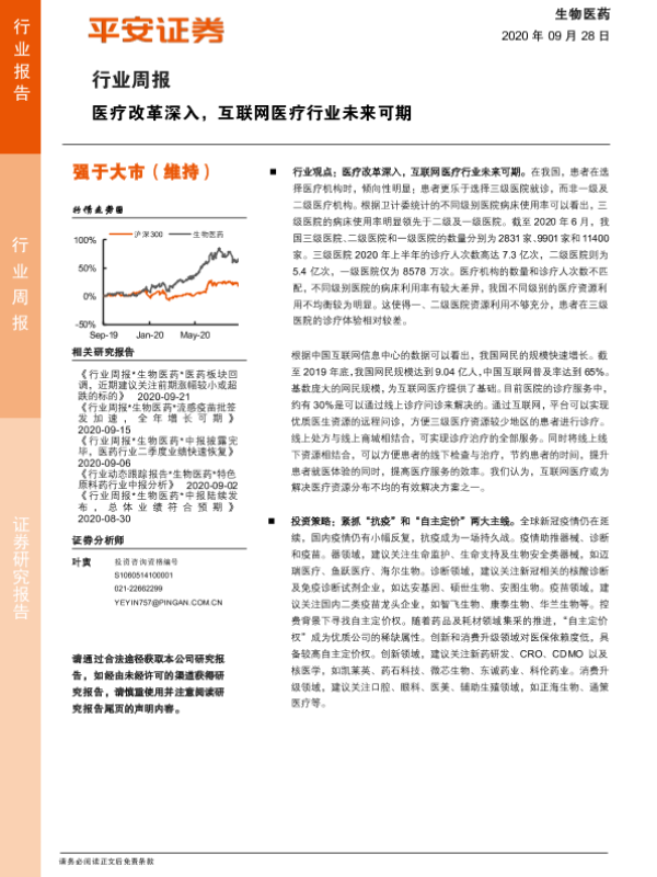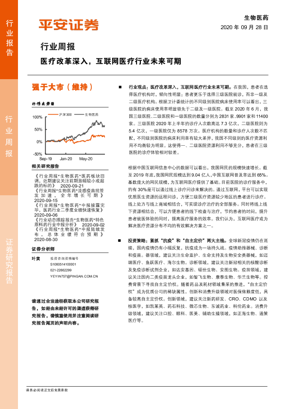 【平安证券】【20200928】生物医药行业周报:医疗改革深入,互联网医疗行业未来可期-7页