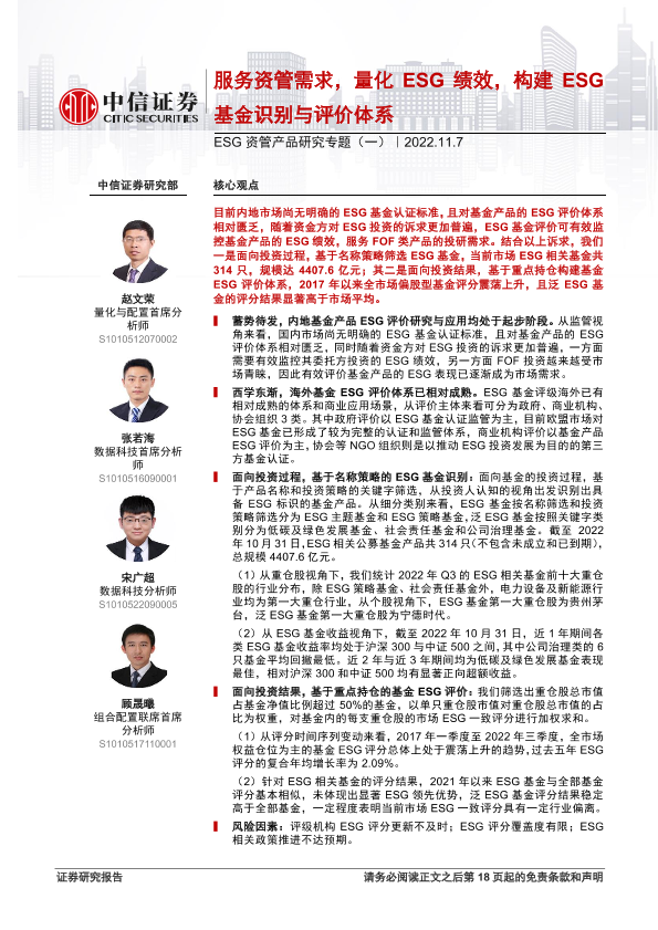 【中信证券】【20221107】ESG资管产品研究专题(一):服务资管需求,量化ESG绩效,构建ESG基金识别与评价体系-19页