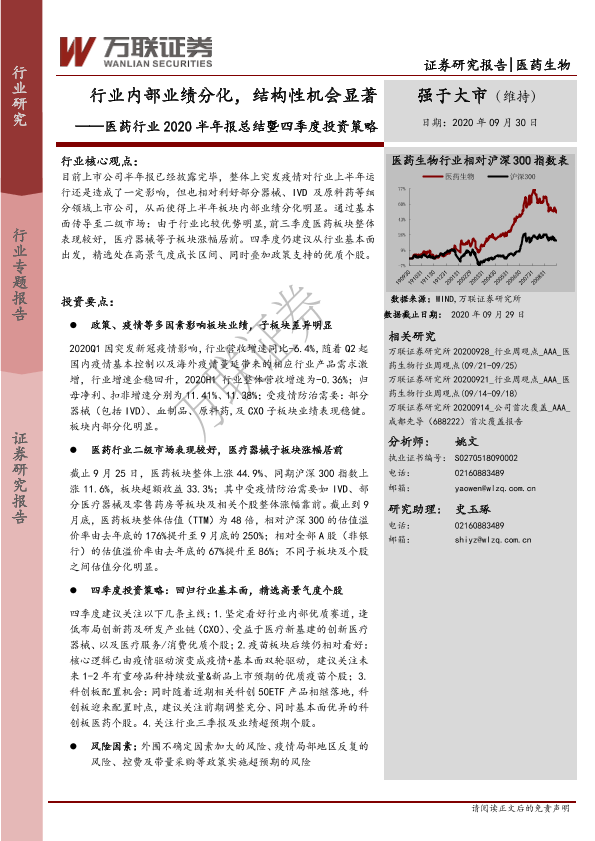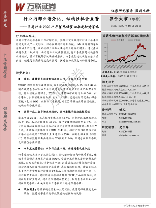 【万联证券】【20200930】医药行业2020半年报总结暨四季度投资策略-16页