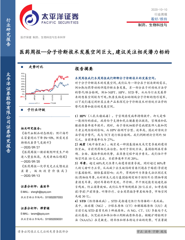 【太平洋证券】【20201010】医药周报:分子诊断技术发展空间巨大,建议关注相关潜力标的-20页