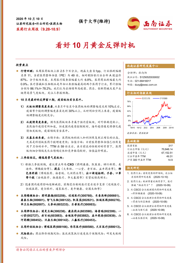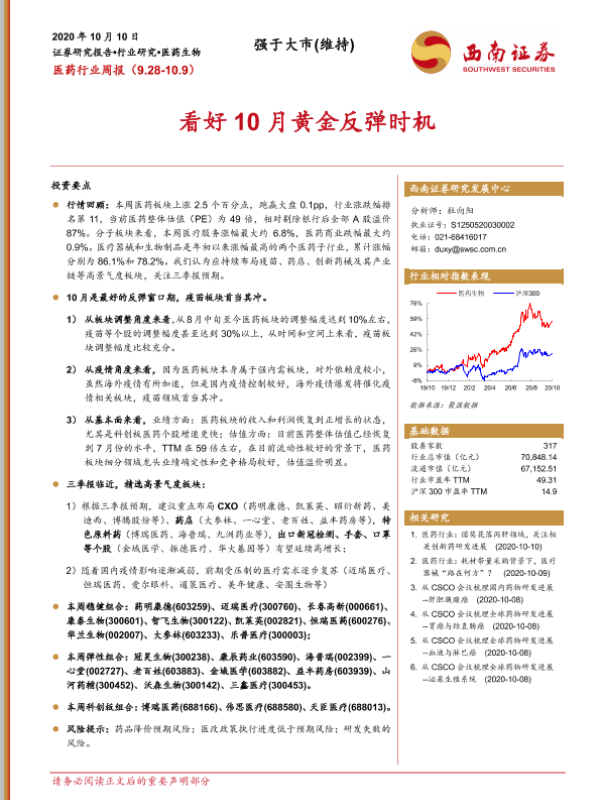【西南证券】【20201010】医药行业周报:看好10月黄金反弹时机-22页