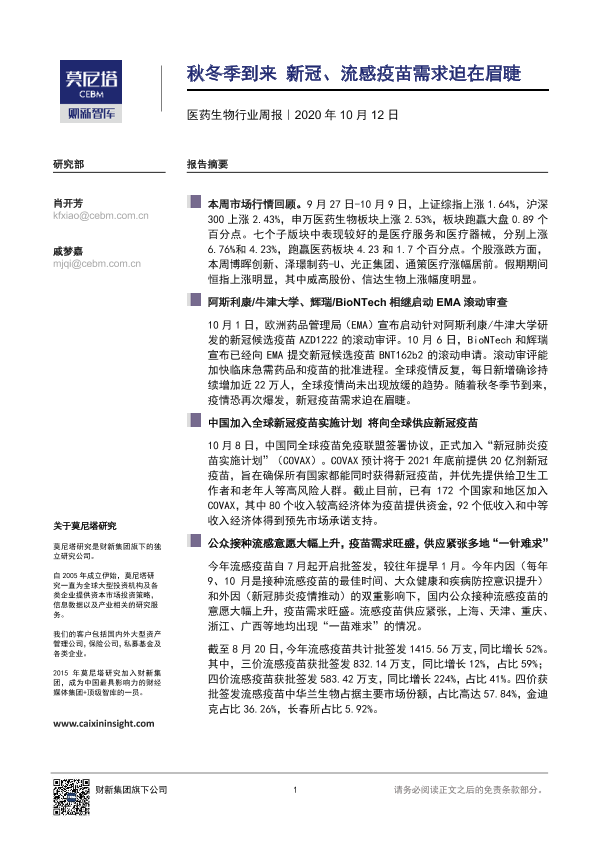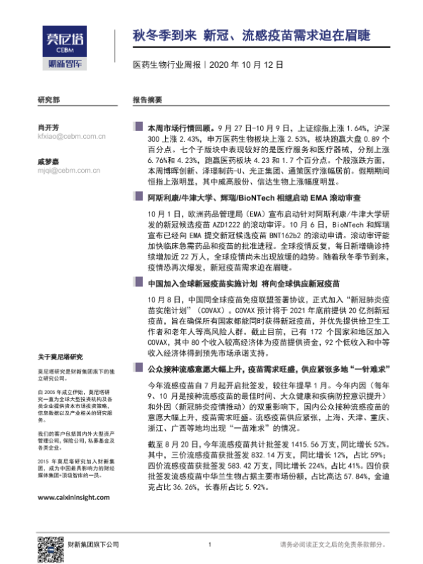 【莫尼塔研究】【20201012】秋冬季到来 新冠、流感疫苗需求迫在眉睫-6页