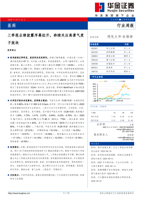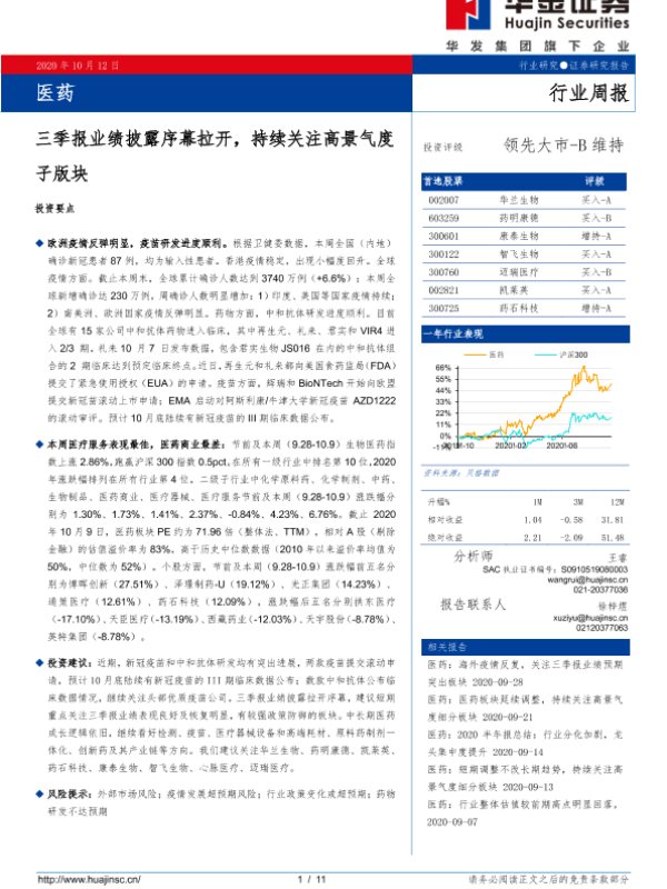 【华金证券】【20201012】医药行业周报:三季报业绩披露序幕拉开,持续关注高景气度子版块-11页