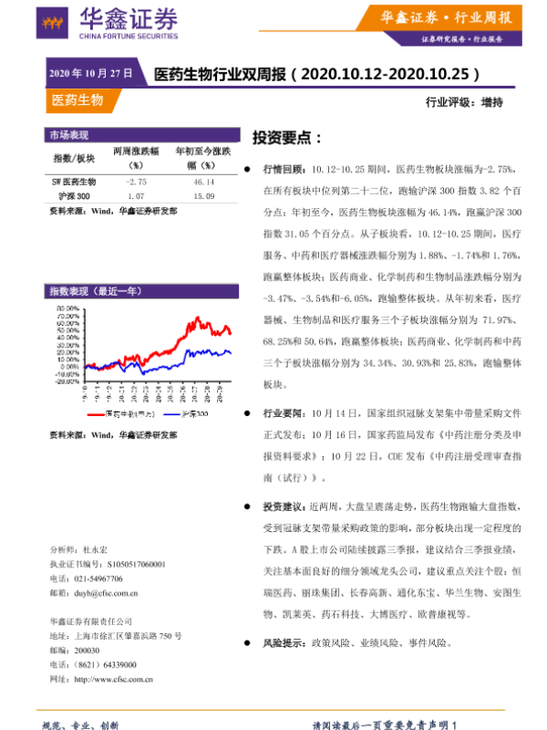 【华鑫证券】【20201027】医药生物行业双周报-10页