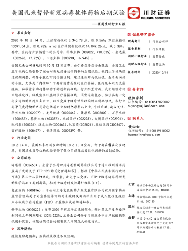 【川财证券】【20201014】美国礼来暂停新冠病毒抗体药物后期试验-3页