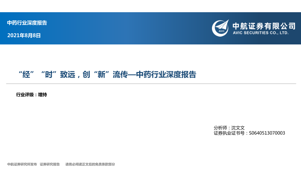 【中航证券】【20210808】中药行业深度报告:“经”“时”致远,创“新”流传-60页