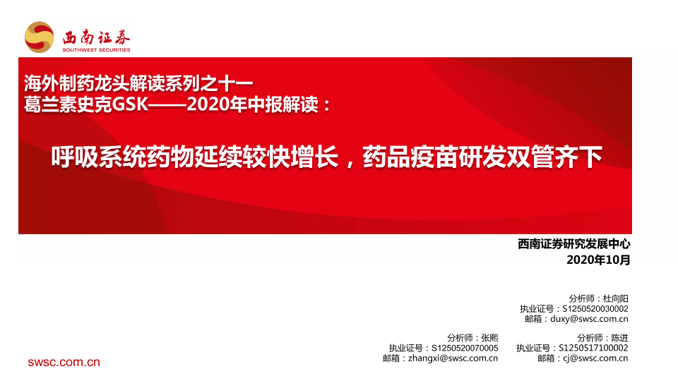 【西南证券】【202010】海外制药龙头解读系列之十一:葛兰素史克GSK——2020年中报解读-16页