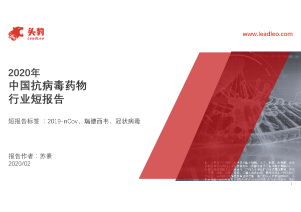 【头豹研究院】【2020】2020年中国抗病毒药物行业短报告-21页