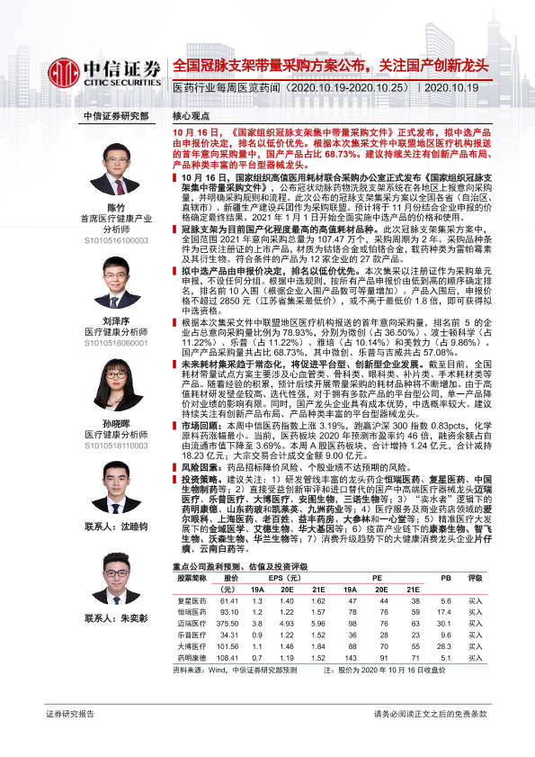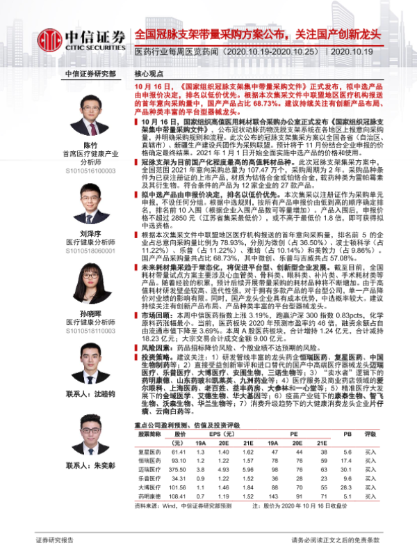 【中信证券】【20201019】全国冠脉支架带量采购方案公布,关注国产创新龙头-18页