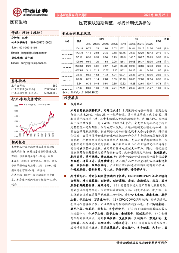 【中泰证券】【20201025】医药生物行业周报:医药板块短期调整,寻找长期优质标的-9页