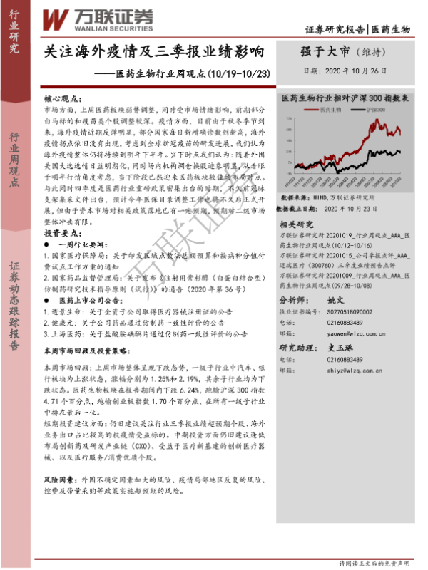 【万联证券】【20201026】医药生物行业周观点:关注海外疫情及三季报业绩影响-8页