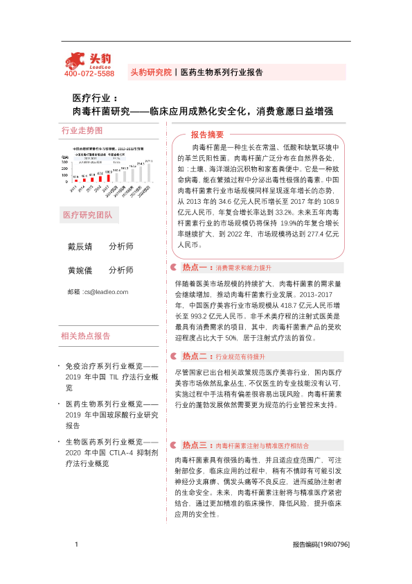 【头豹研究院】【20201026】医疗行业:肉毒杆菌研究——临床应用成熟化安全化,消费意愿日益增强-32页