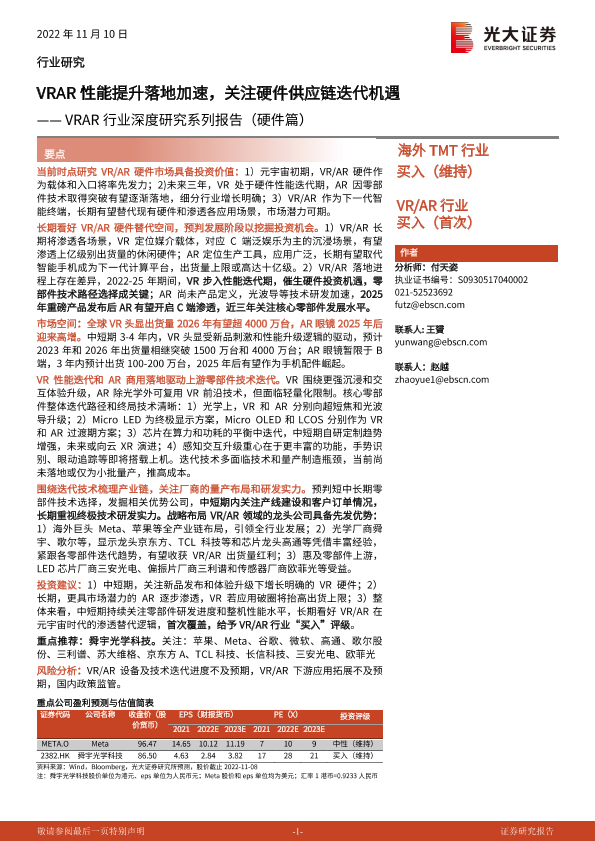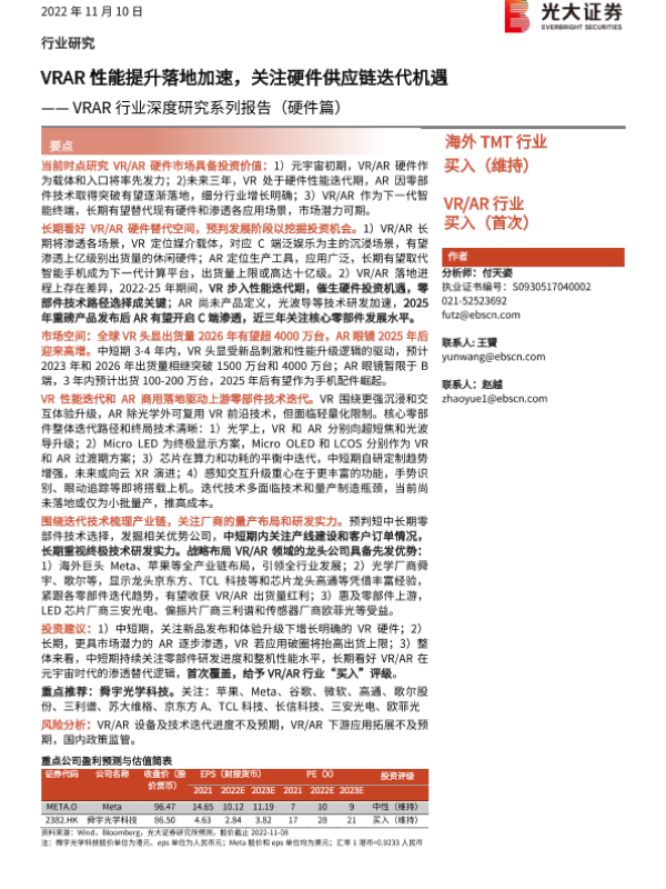 【光大证券】【20221110】VRAR行业深度研究系列报告(硬件篇):VRAR性能提升落地加速,关注硬件供应链迭代机遇-87页
