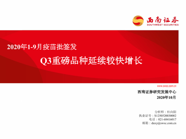 【西南证券】【202010】2020年1-9月疫苗批签发:Q3重磅品种延续较快增长-81页