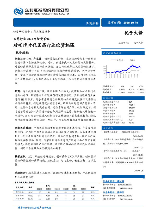 【东北证券】【20201030】医药行业2021年投资策略:后疫情时代医药行业投资机遇-54页