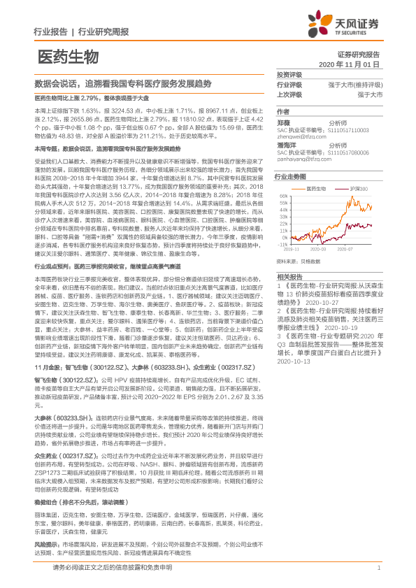 【天风证券】【20201101】医药生物行业研究周报:数据会说话,追溯看我国专科医疗服务发展趋势-23页