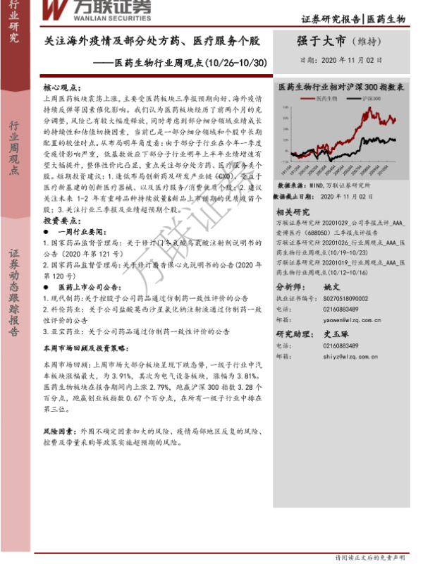 【万联证券】【20201102】医药生物行业周观点:关注海外疫情及部分处方药、医疗服务个股-7页