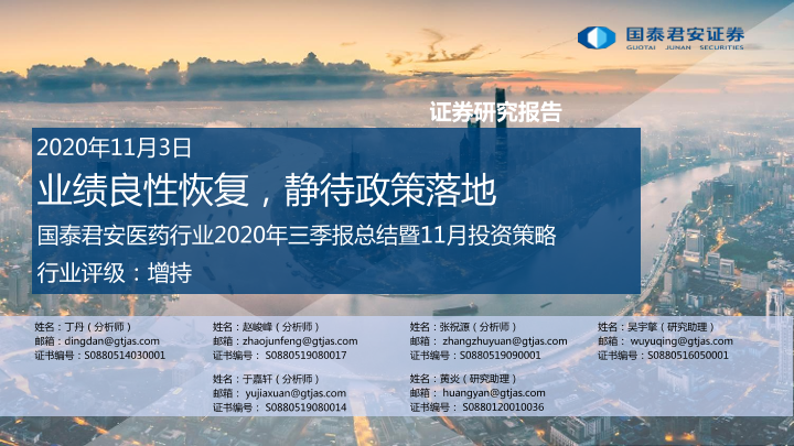 【国泰君安证券】【20201103】医药行业2020年三季报总结暨11月投资策略-37页