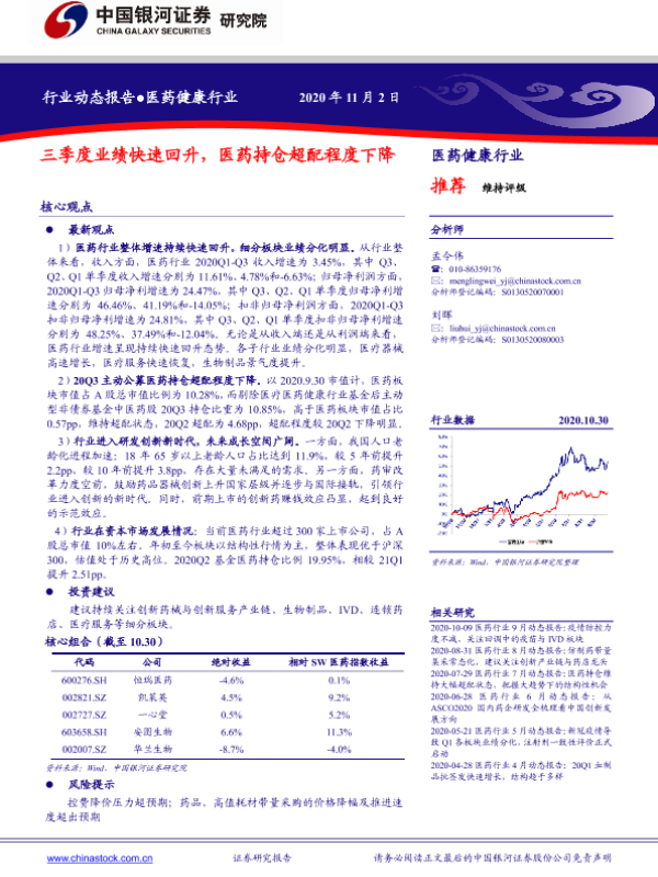 【银河证券】【20201102】三季度业绩快速回升,医药持仓超配程度下降-56页