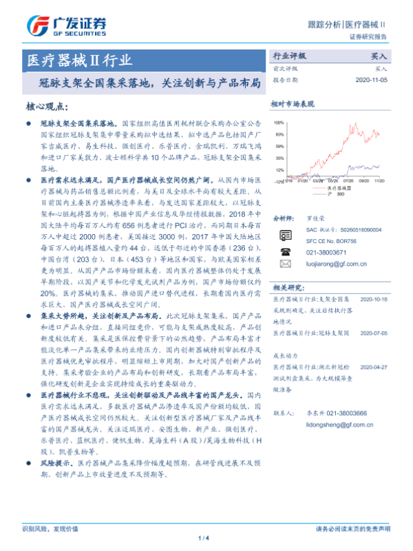 【广发证券】【20201105】冠脉支架全国集采落地,关注创新与产品布局-4页