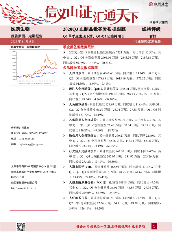 【山西证券】【20201105】2020Q3血制品批签发数据跟踪-25页