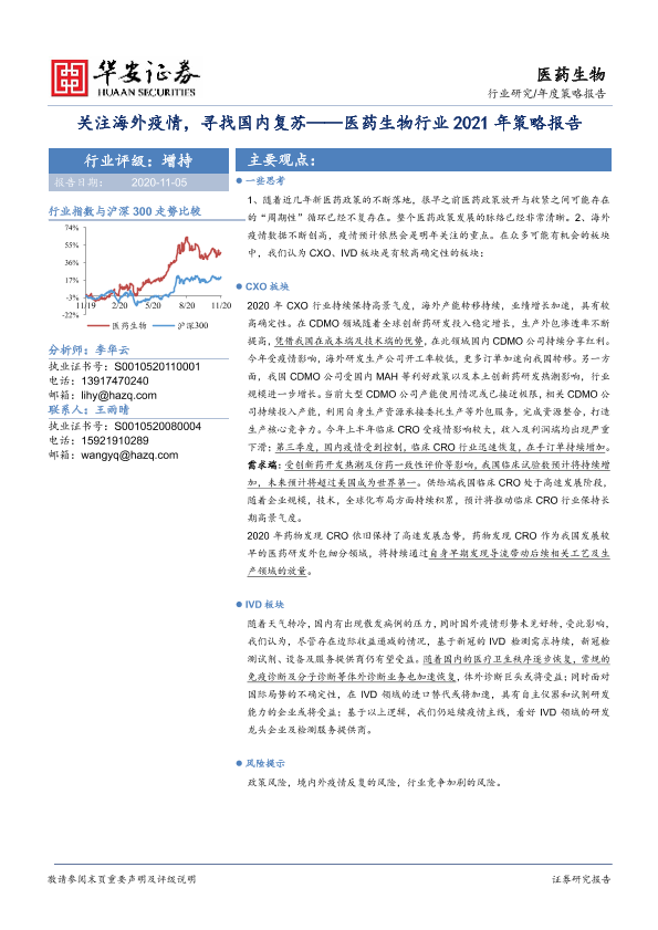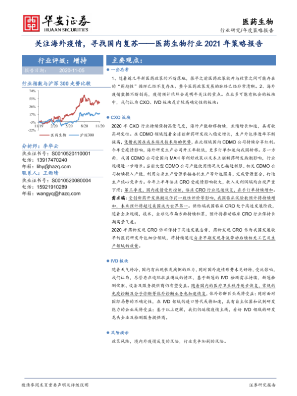 【华安证券】【20201105】医药生物行业2021年策略报告:关注海外疫情,寻找国内复苏-56页