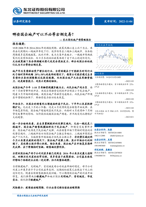 【东北证券】【20221104】哪些国企地产可以不必等右侧交易?---东北固收地产债策略报告-25页