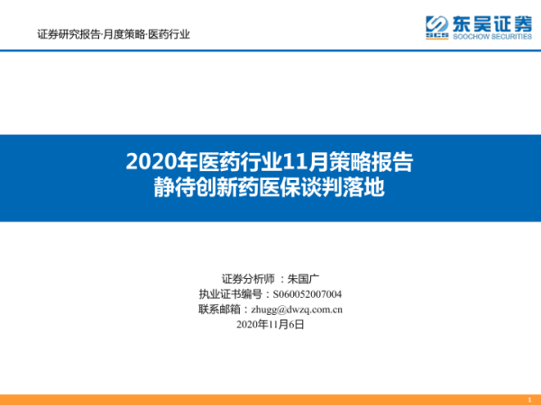 【东吴证券】【20201106】2020年医药行业11月策略报告:静待创新药医保谈判落地-34页