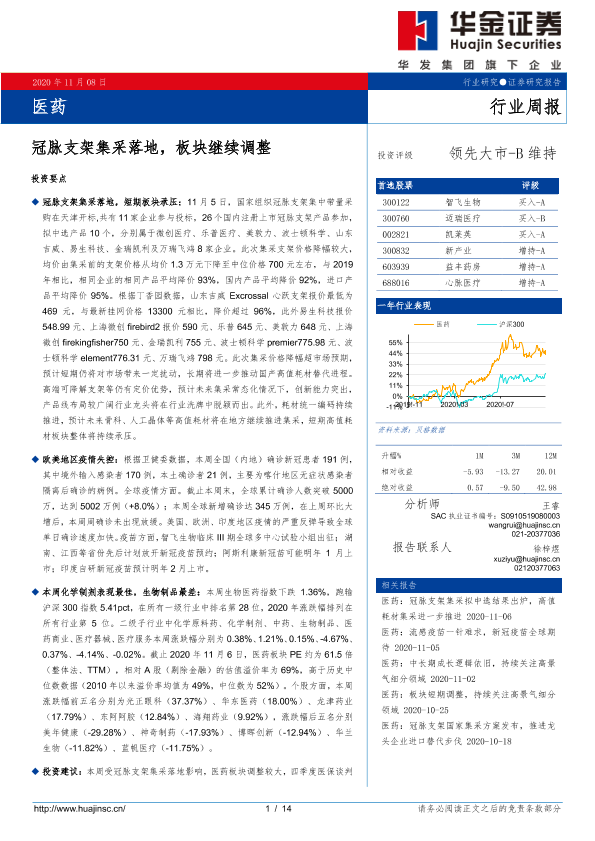 【华金证券】【20201108】医药行业周报:冠脉支架集采落地,板块继续调整-14页