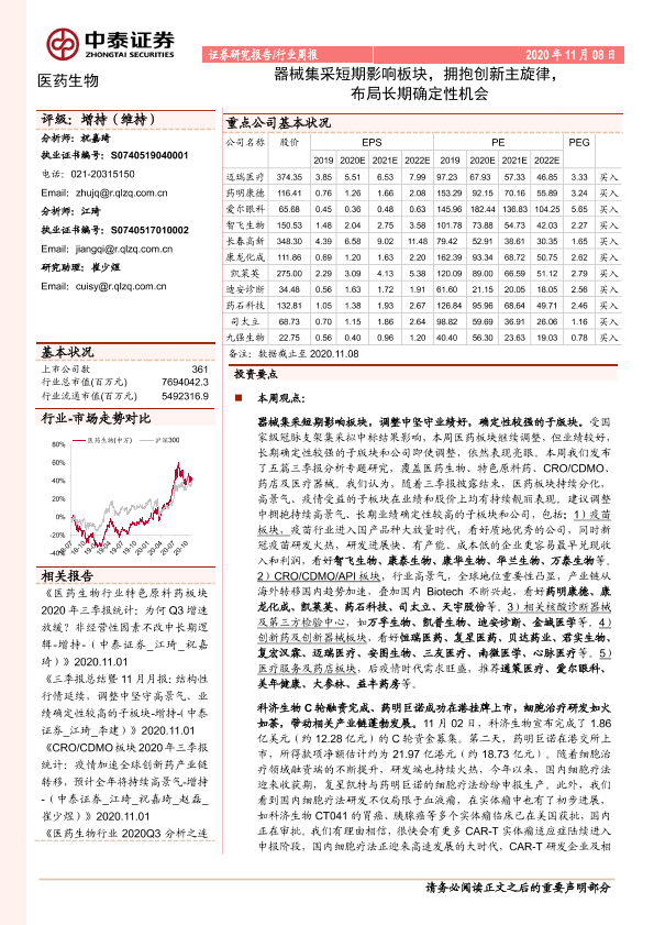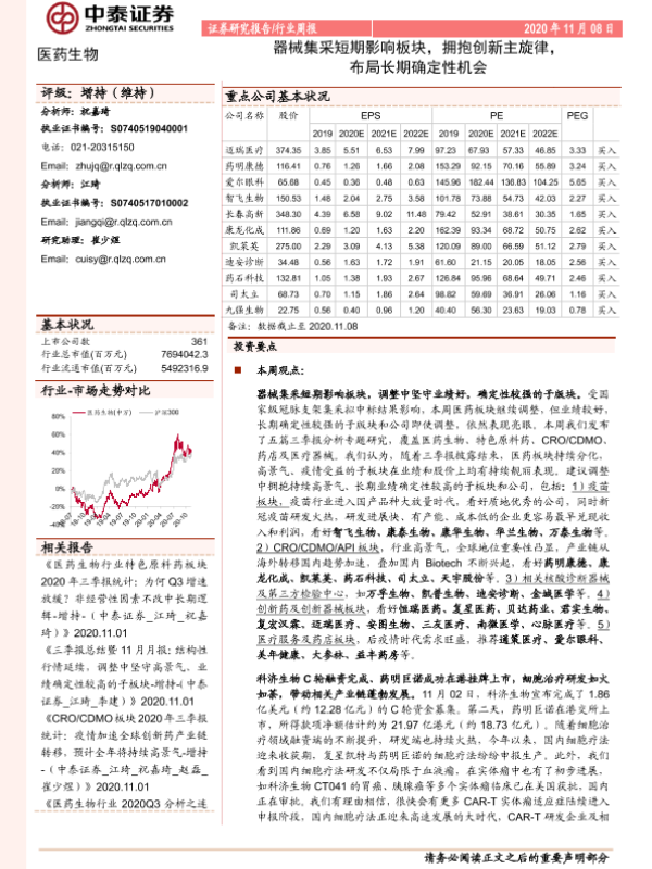 【中泰证券】【20201108】医药生物行业周报:器械集采短期影响板块,拥抱创新主旋律,布局长期确定性机会-12页
