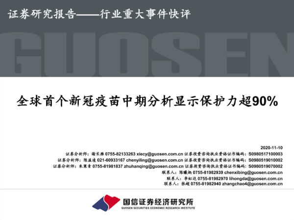 【国信证券】【20201110】全球首个新冠疫苗中期分析显示保护力超90%-28页