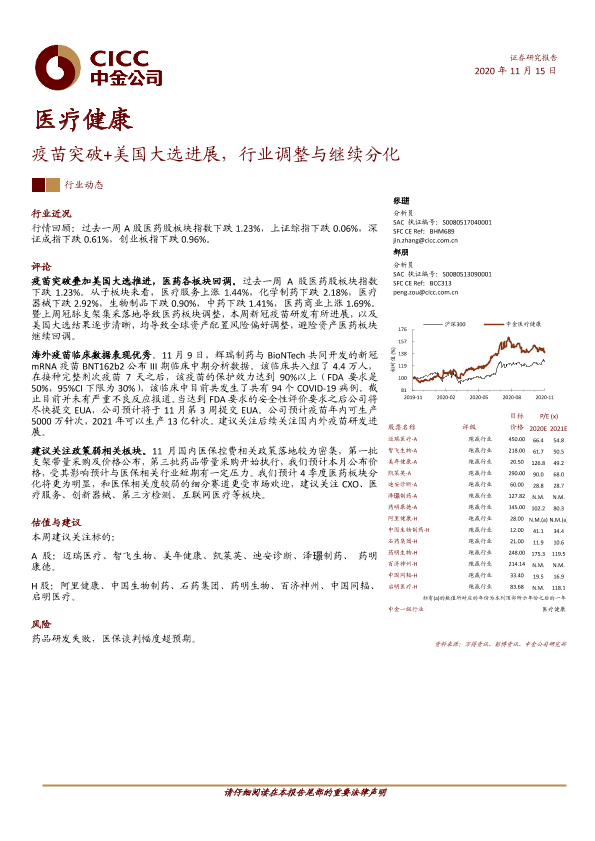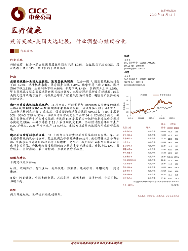 【中金公司】【20201115】医疗健康:疫苗突破+美国大选进展,行业调整与继续分化-12页