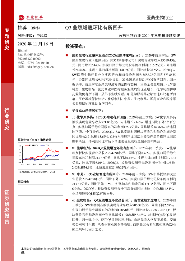 【东莞证券】【20201116】医药生物行业2020年三季报业绩综述-21页
