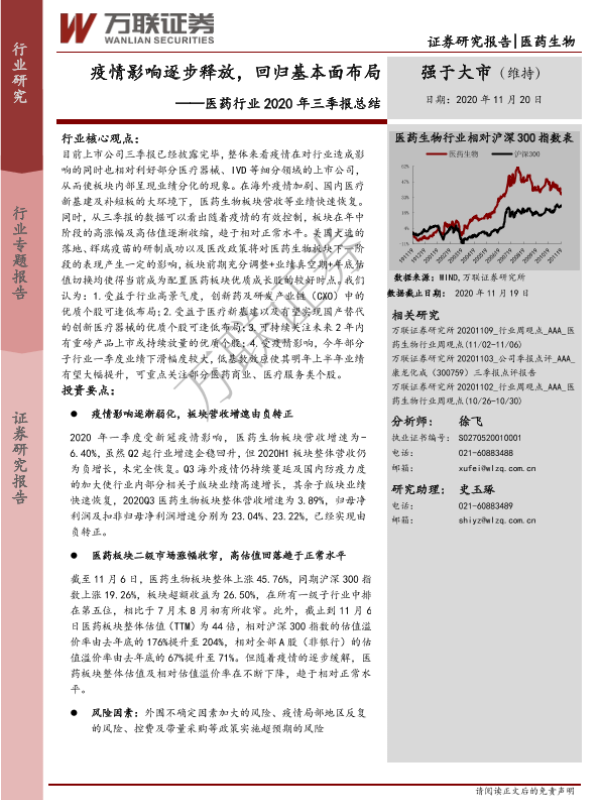 【万联证券】【20201120】医药行业2020年三季报总结:疫情影响逐步释放,回归基本面布局-17页