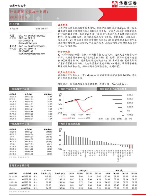 【华泰证券】【20201122】医药生物行业周报(第四十七周)-13页