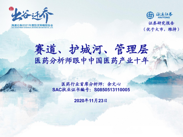 【海通证券】【20201123】医药生物行业年度策略:医药分析师眼中中国医药产业十年:赛道、护城河、管理层-39页