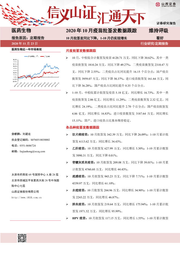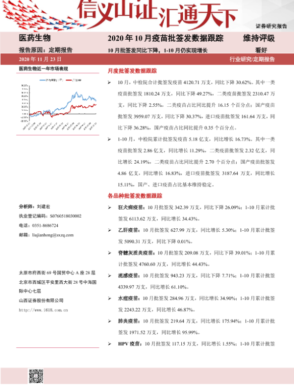 【山西证券】【20201123】2020年10月疫苗批签发数据跟踪-29页
