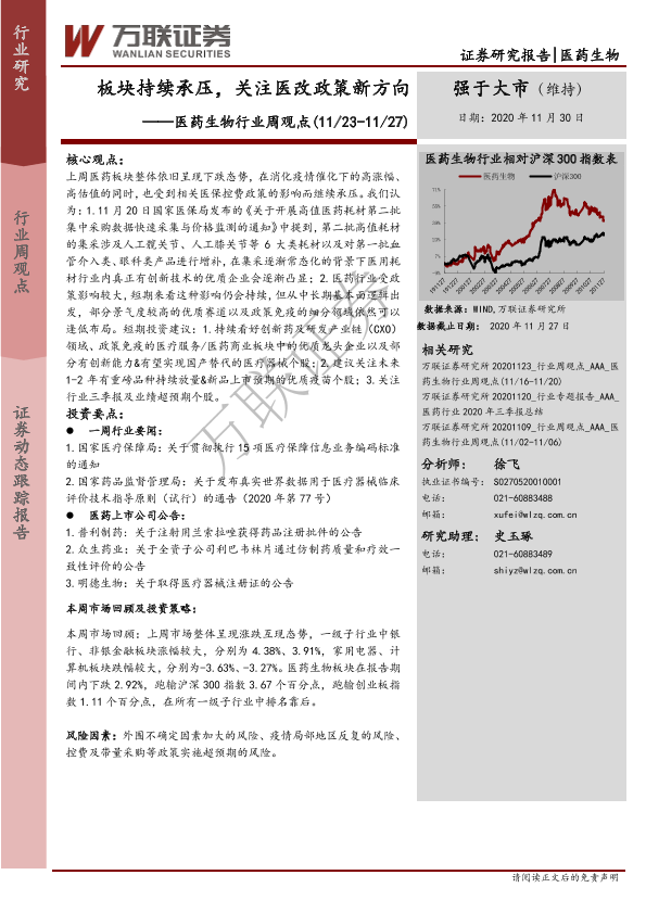 【万联证券】【20201130】医药生物行业周观点:板块持续承压,关注医改政策新方向-8页