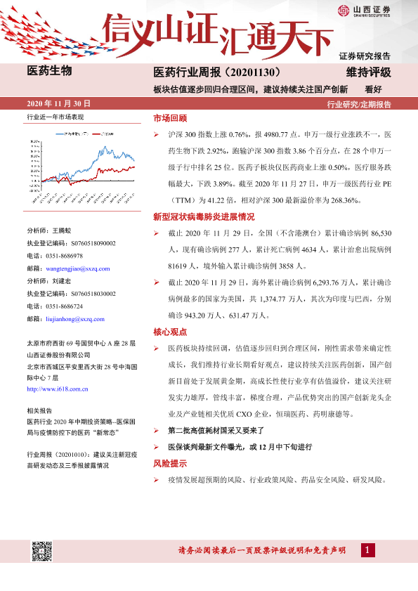 【山西证券】【20201130】医药行业周报:板块估值逐步回归合理区间,建议持续关注国产创新-8页