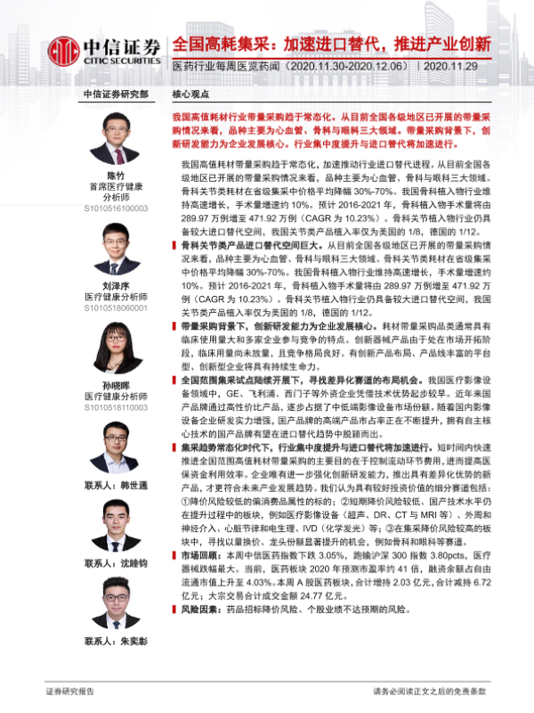 【中信证券】【20201129】全国高耗集采:加速进口替代,推进产业创新-20页