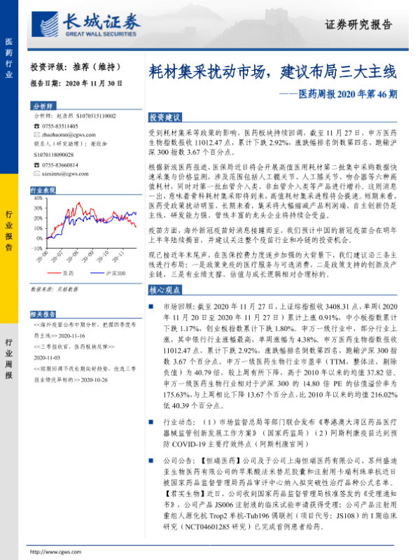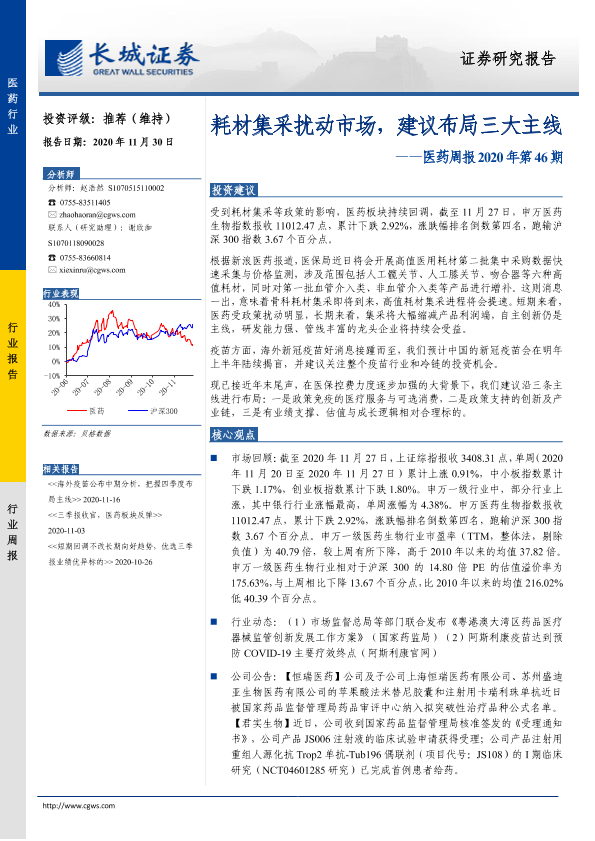 【长城证券】【20201130】耗材集采扰动市场,建议布局三大主线-17页