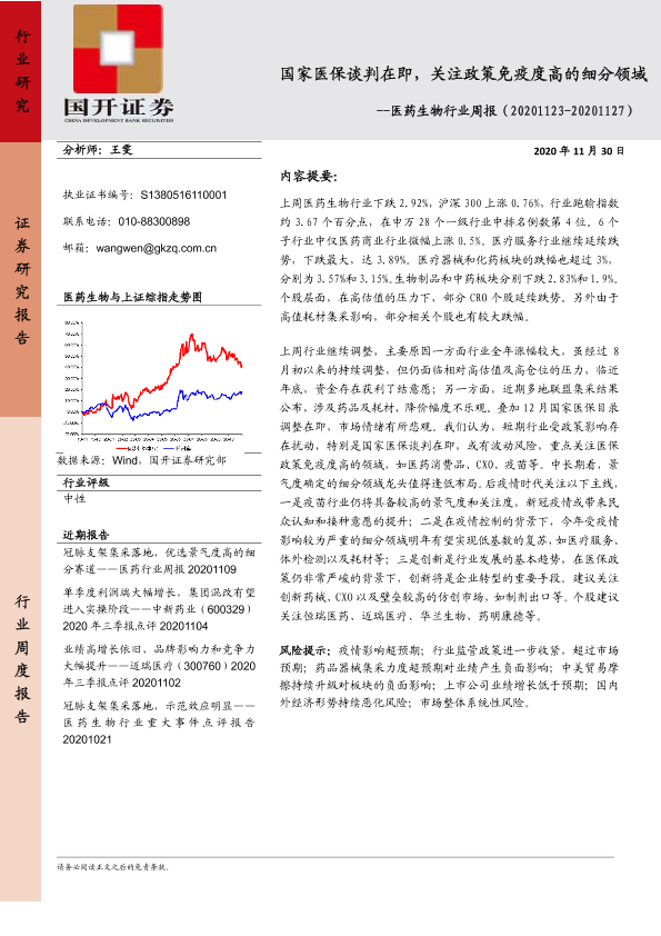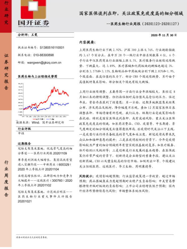 【国开证券】【20201130】医药生物行业周报:国家医保谈判在即,关注政策免疫度高的细分领域-9页