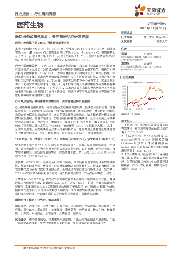 【天风证券】【20201130】医药生物行业:静待医药政策落地期,关注重磅品种研发进展-18页