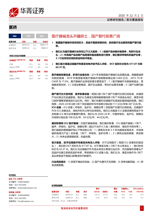 【华兴证券】【20201202】医药行业:医疗器械龙头开疆辟土,国产替代前景广阔-98页