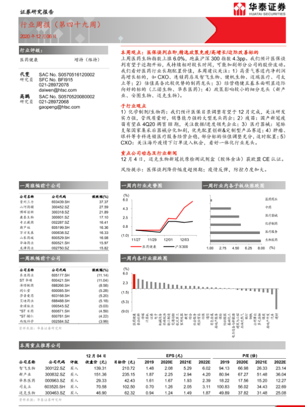 【华泰证券】【20201206】医药健康行业周报(第四十九周)-11页