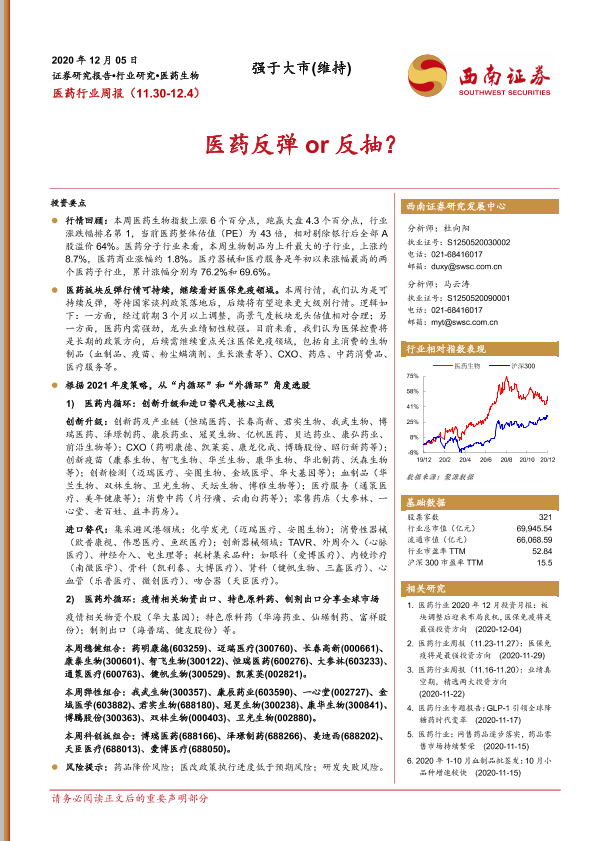 【西南证券】【20201205】医药行业周报:医药反弹or反抽?-22页