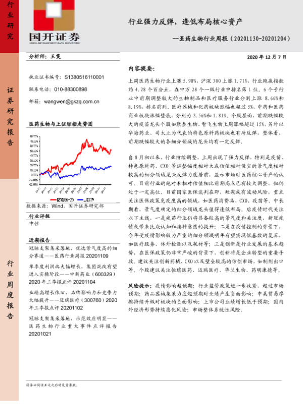 【国开证券】【20201207】医药生物行业周报:行业强力反弹,逢低布局核心资产-9页